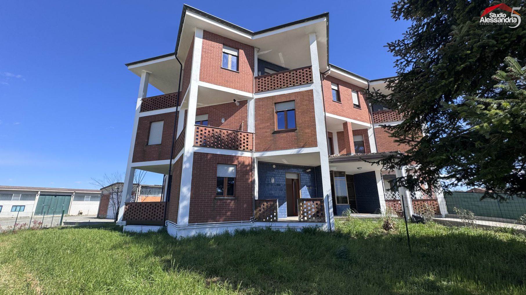 Tra Felizzano e Masio - appartamento al piano rialzato, ristrutturato ed in ottime condizioni, completato da ampi terrazzi e porzione di giardino provato. E' inserito in una piccola palazzina di recente recupero, con altro ampio giardino condominiale e parcheggio libero riservato ai condomini. Riscaldamento autonomo a GPL. Nessuna spesa di condominio. L'alloggio è composto da : ingresso, sala, cucinotta, 2 camere, bagno. Sono presenti 3 ampi terrazzi che a loro volta si affacciano su una comoda porzione di giardino privato.