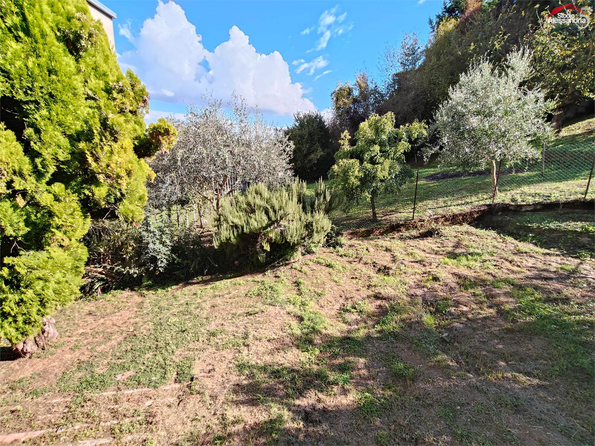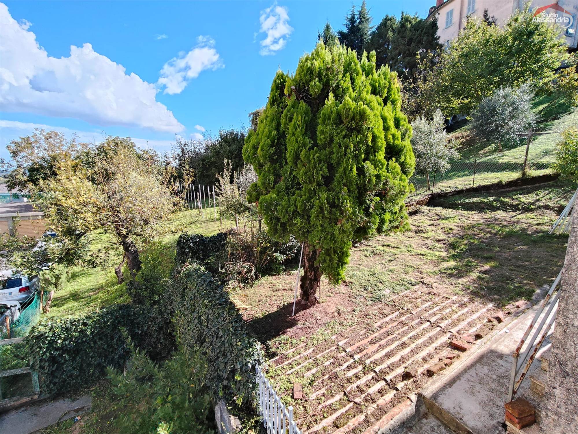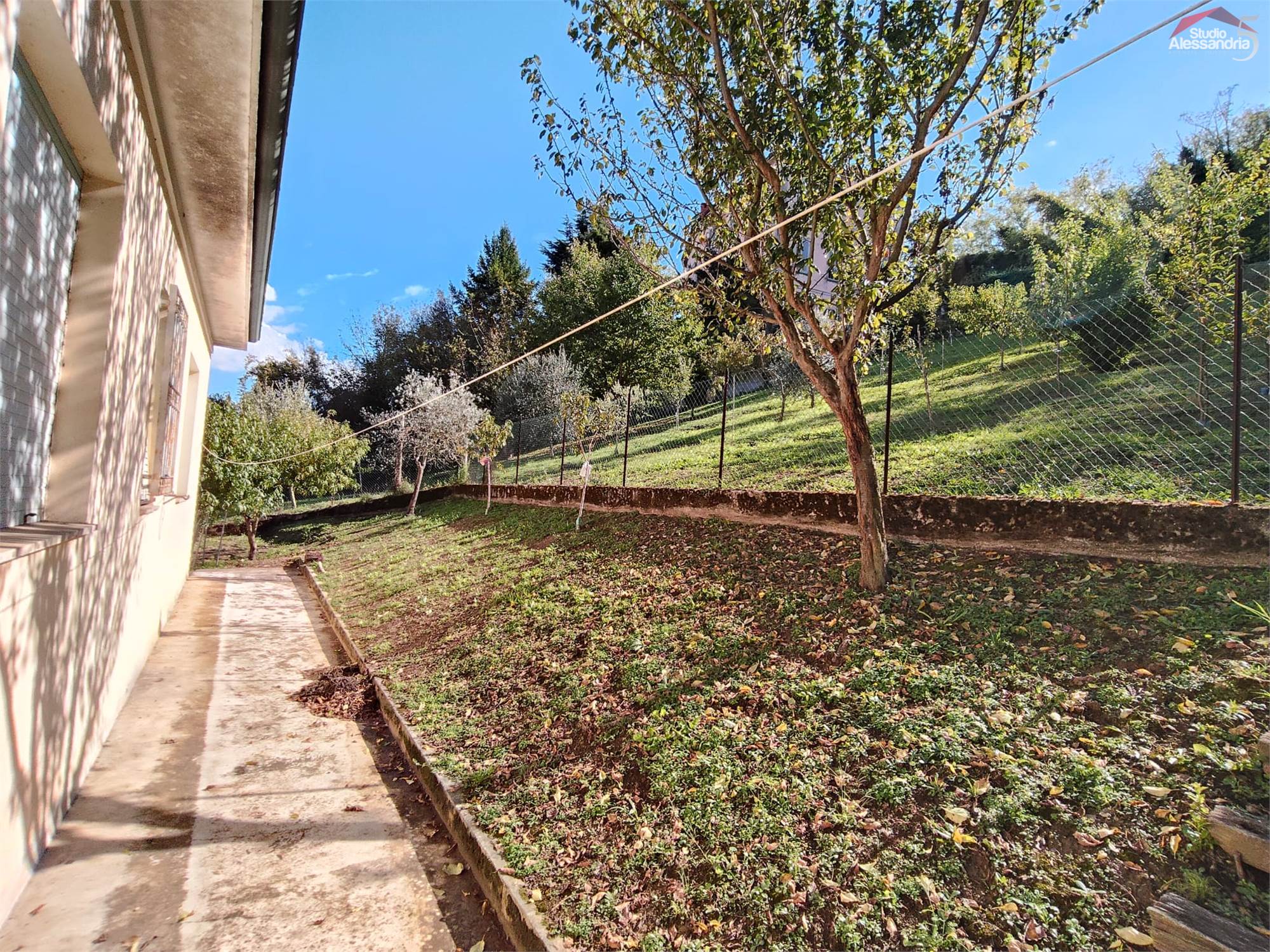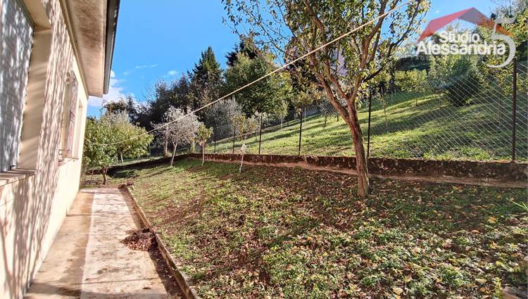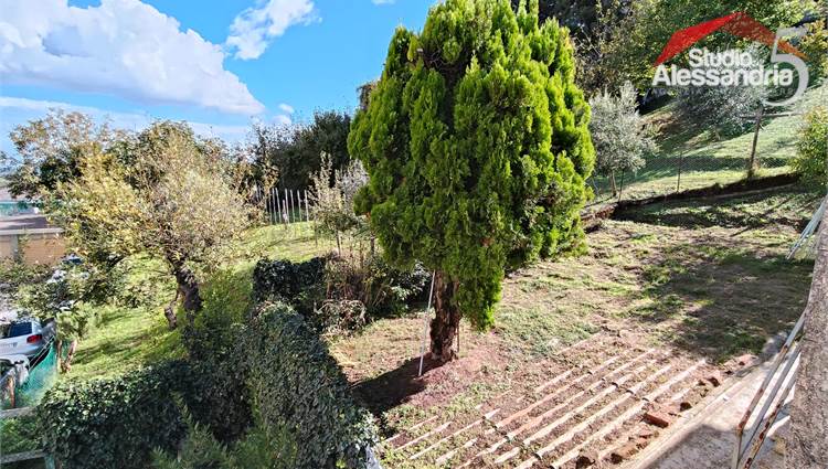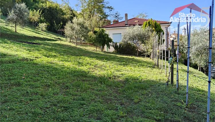 San Salvatore Monf.to - Villa sita in paese con una gradevole vista sul paese e uno spazioso giardino privato. La casa si compone di: classico ingresso sul corridoio, cucinotto, soggiorno, sala, due camere da letto, bagno, balcone e terrazzino. Al piano terra è presente un box, un grande e alto locale adibito a vario uso o ricovero mezzi. In esterno oltre all'area cortilizia, si trova anche una zona verde ben piantumata di circa 1.500metri.