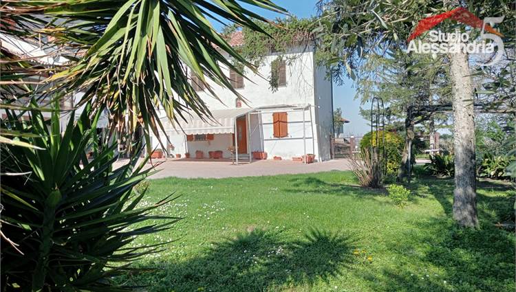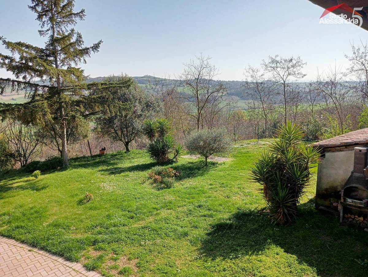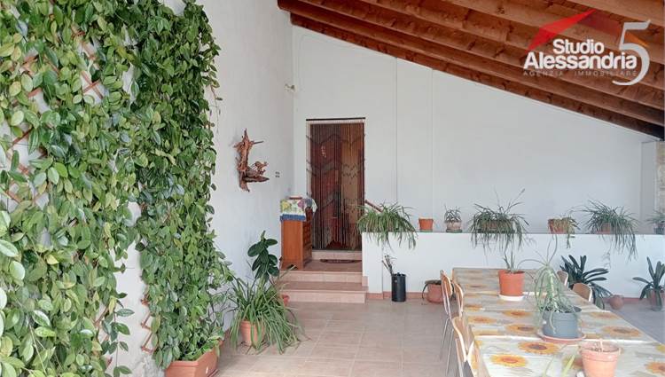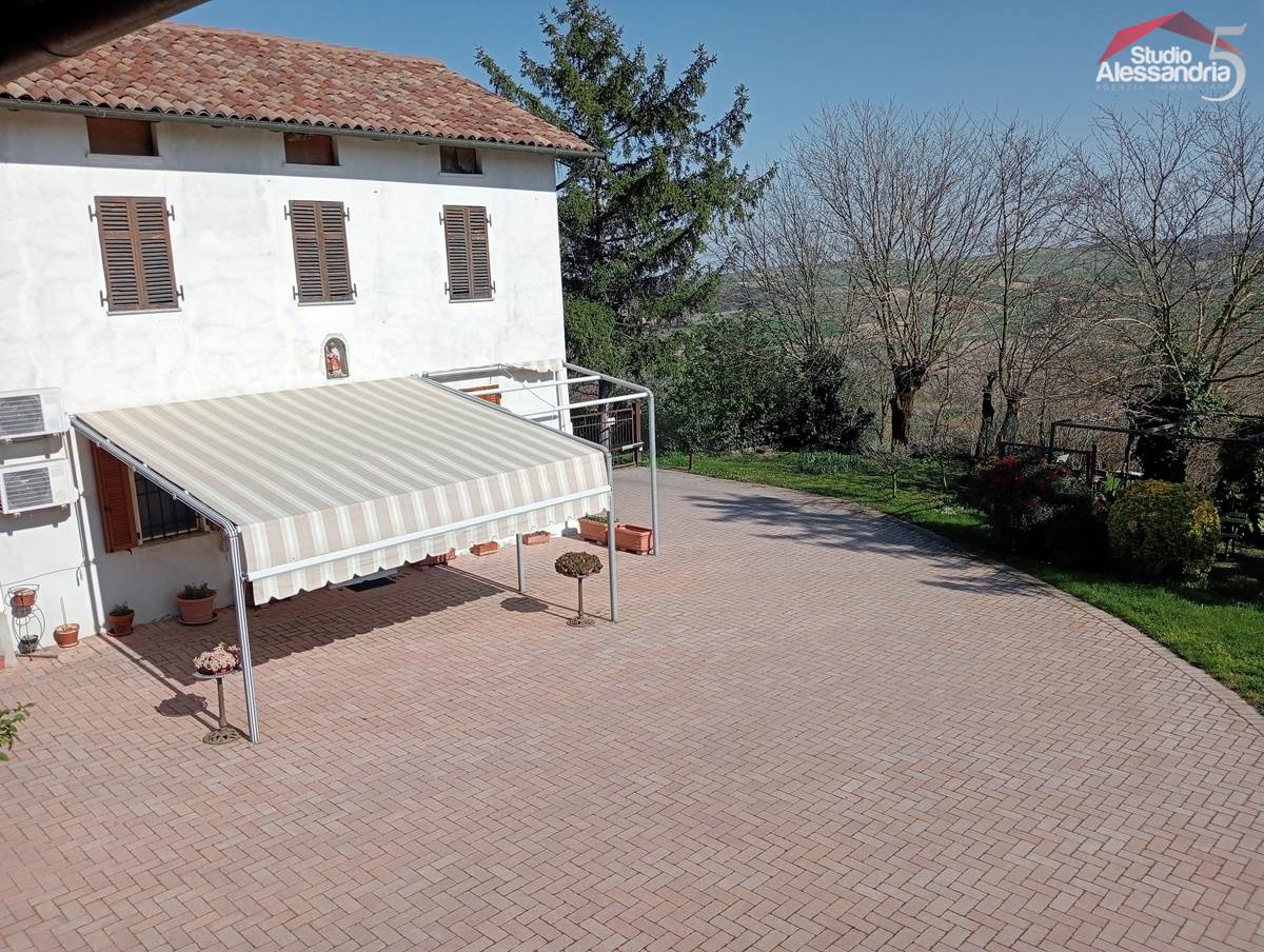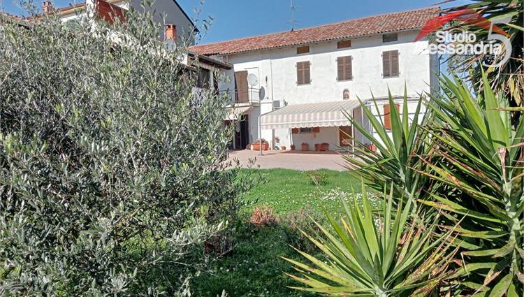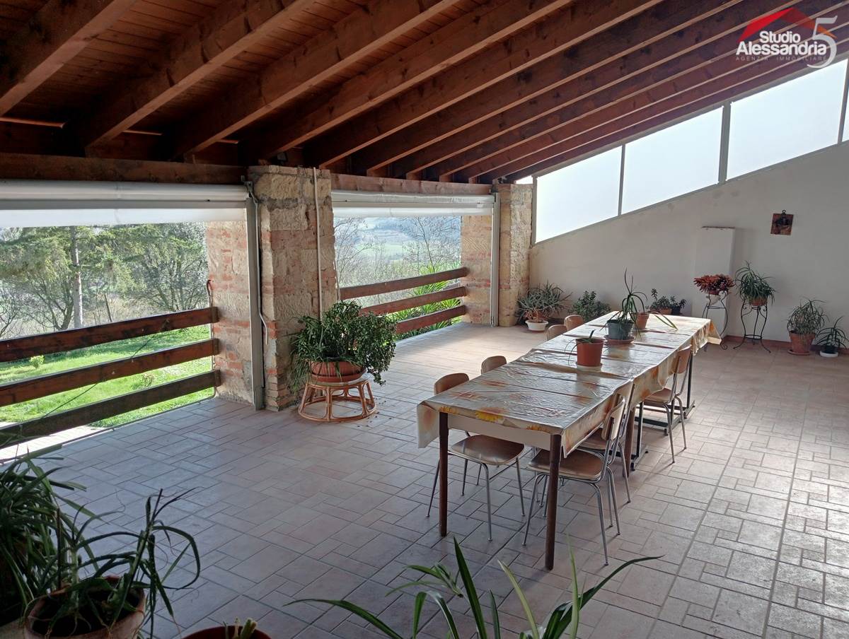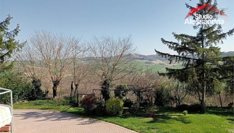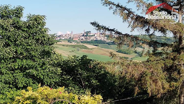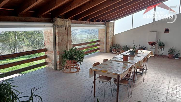 Conzano - Casa libera su tre lati con vista aperta sulla vallata, già abitabile, con possibile soluzione a bifamiliare. Al piano terra troviamo una grande cucina, due spaziosi saloni, una camera, un servizio, una dispensa e locale caldaia. Il piano superiore ha 4 camere (una con allacci cucina) doppi servizi, ampio disimpegno e un grande terrazzo coperto. In esterno sono presenti dei comodi locali per il ricovero mezzi e attrezzi. Area verde di circa 3.500m. Buona struttura da fomdamenta a tetto
