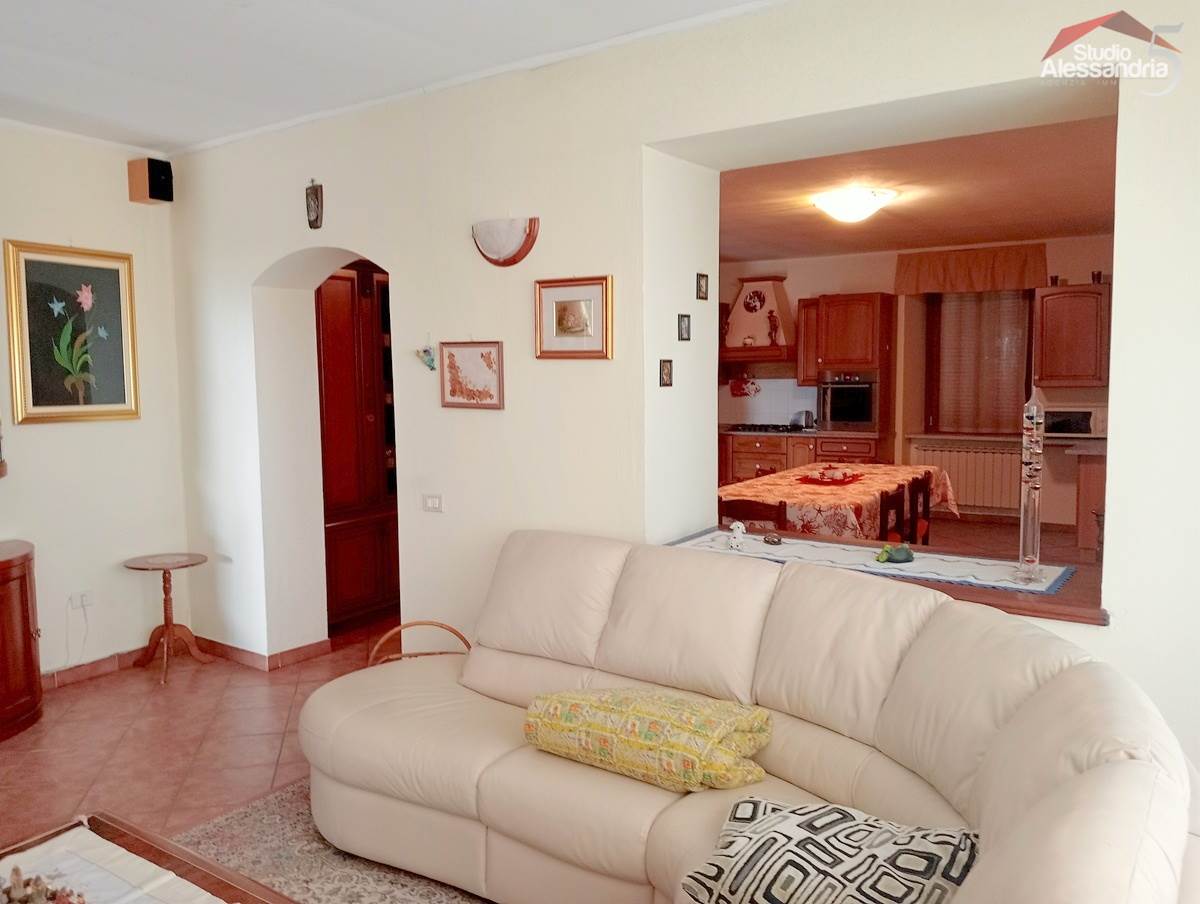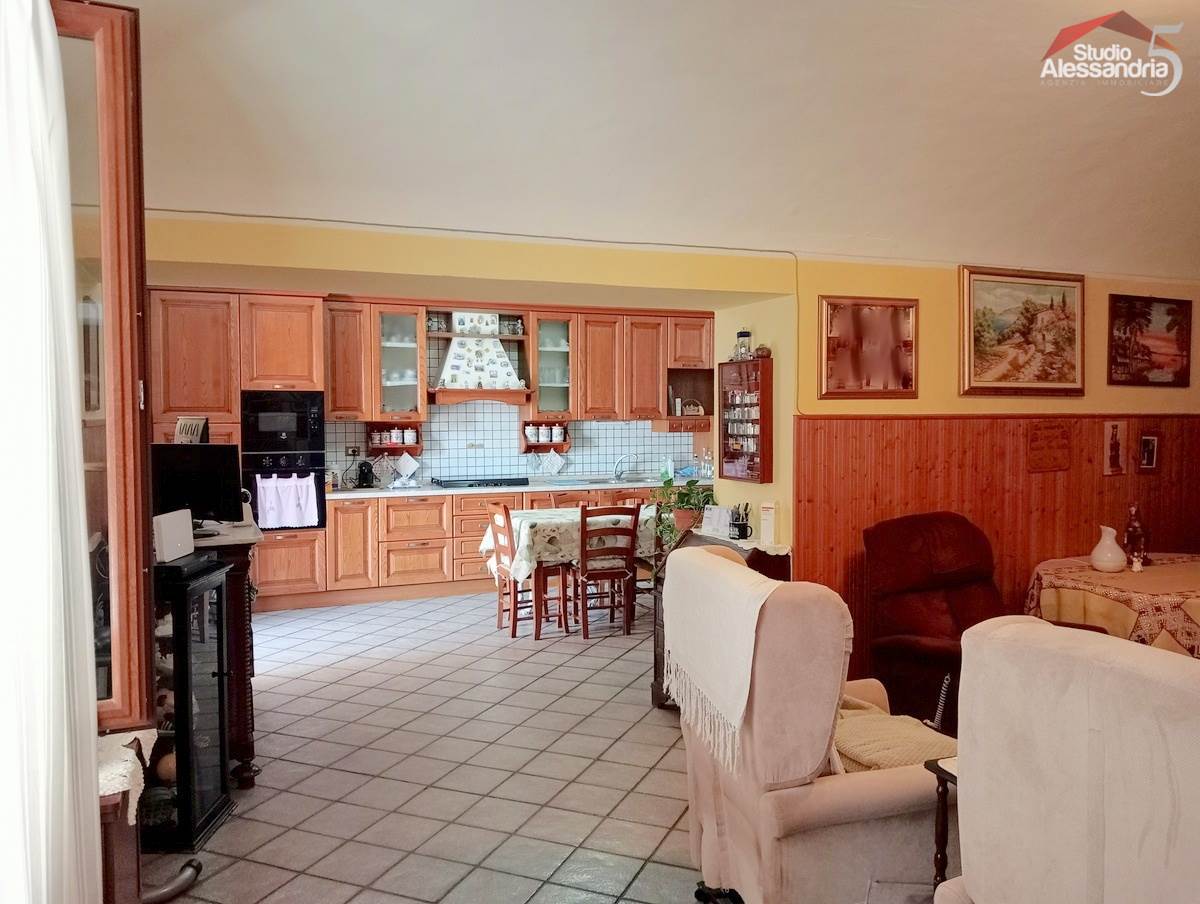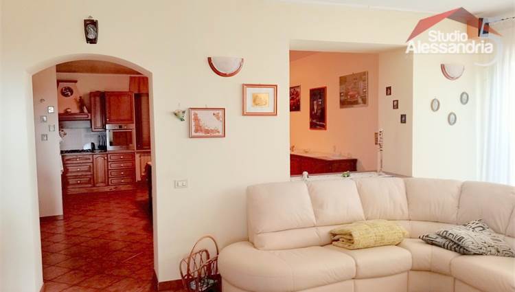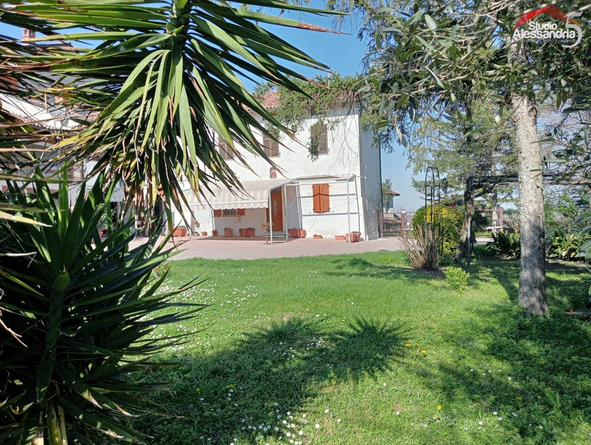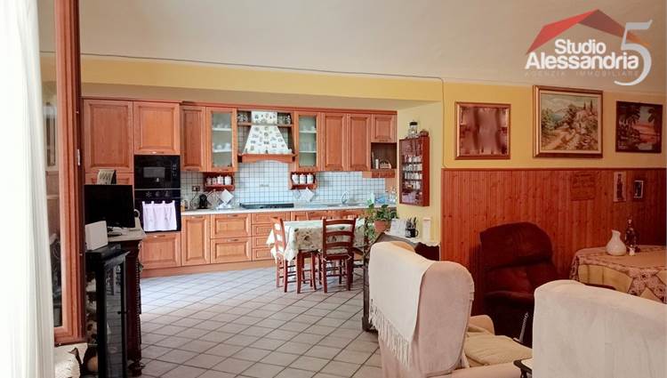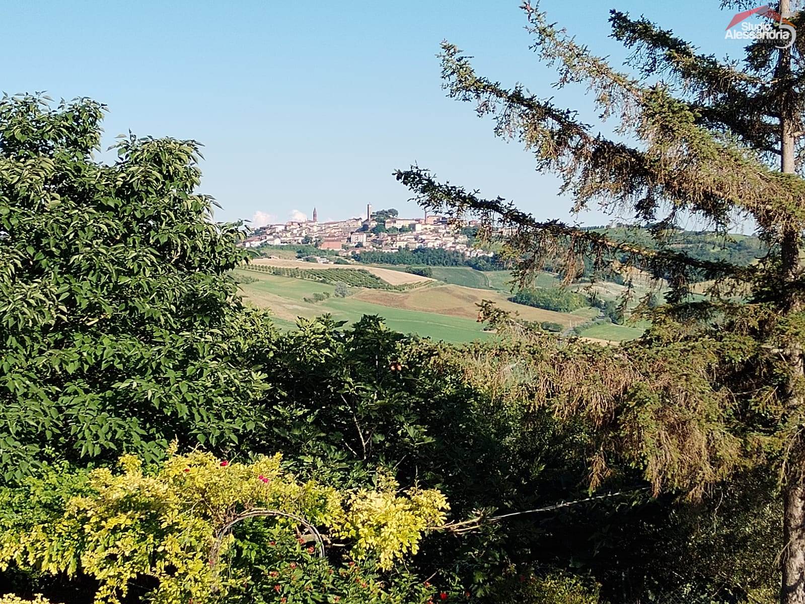 Conzano - Casa libera su tre lati con vista aperta sulla vallata, già abitabile, con possibile soluzione a bifamiliare. Al piano terra troviamo una grande cucina, due spaziosi saloni, una camera, un servizio, una dispensa e locale caldaia. Il piano superiore ha 4 camere (una con allacci cucina) doppi servizi, ampio disimpegno e un grande terrazzo coperto. In esterno sono presenti dei comodi locali per il ricovero mezzi e attrezzi. Area verde di circa 3.500m. Buona struttura da fomdamenta a tetto