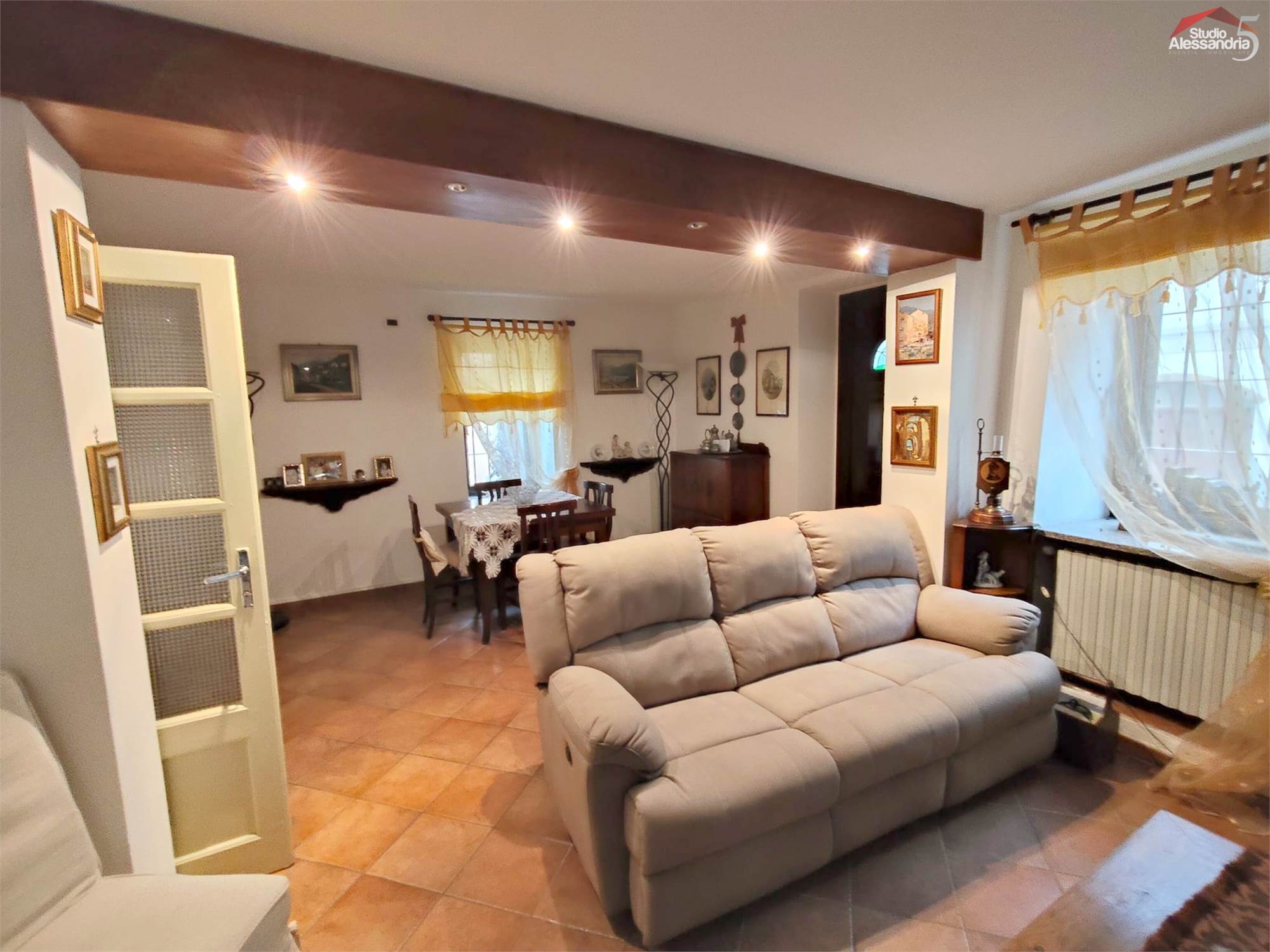 Lu Monferrato - Nel suggestivo paese, casa disposta su due livelli perfettamente abitabile, OTTIMA soluzione anche uso investimento dato che viene venduta arredata. La casa ha un doppio ingresso, un salone con caminetto, una cucina abitabile, un servizio, un box che conduce al cortiletto e una cantina/taverna. Al piano superiore troviamo due camere matrimoniali, un disimpegno, un bagno, un balcone che conduce ad una terza caratteristica stanza con travi in legno a vista.